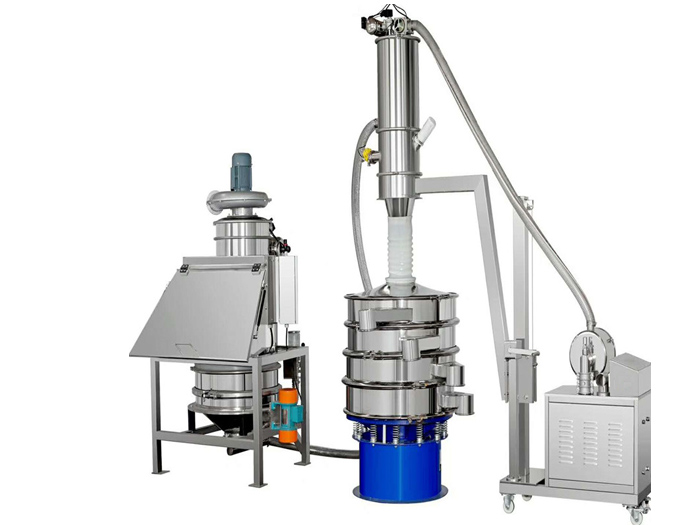 無塵投料站適用于制藥、化工、食品、電池材料等行業大、中、小袋物料的拆包、投放、篩分和卸料。拆包時由于集塵風機的作用,可以避免物料粉塵到處飛揚。當物料解袋并倒入下一道工序時,只需人工直接拆包投入到該系統,物料通過振動篩,可將大塊物料和異物攔截,從而保證符合要求的顆粒排出。